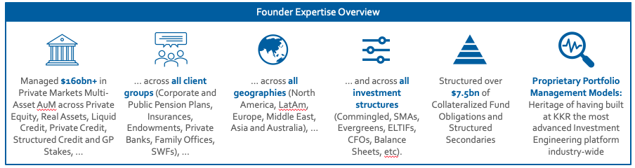 Note: Track record includes portfolios for which George Diaconu had Portfolio Management, Asset Allocation, or Portfolio Construction responsibilities during his tenure at KKR and Partners Group. Structured Capital Solutions experience includes $8bn+ of transactions across Collateralized Fund Obligations, Rated Fund structures and other structured solutions at KKR, Partners Group and Alternatives Portfolio Solutions, of which approximately $5.5bn have been completed.
